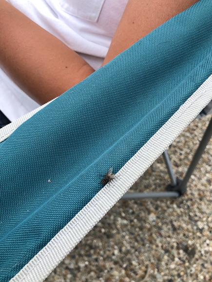 ハエブロガーの肘掛けにハエが