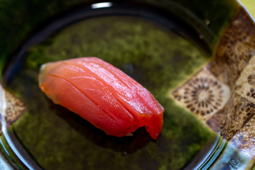 インドネシアの生キハダマグロの赤身を3日ほど熟成させて軽く漬けました
