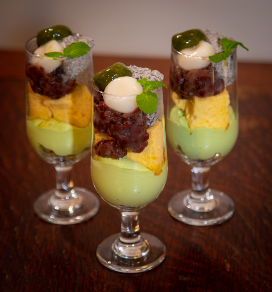 白玉2種、黒ごまジェラート、シフォンケーキ
